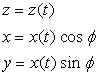 (x, y)平面における卵形曲線の方程式は卵形曲線のページの(9b)式ですが、
