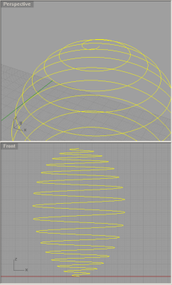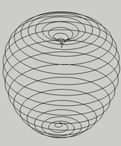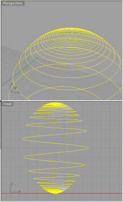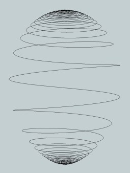 2011年1月にスウェーデンのジョシュア・ゴットデンカー氏(以下、ジョシュア氏)から 球面のスパイラル曲線を紹介され、 卵形曲線にも出来ないか、とのメールが寄せられました。山本がスパイラル曲線の式を作り、3次元(3D)における曲線の数値座標を計算しました。 それをエクセルファイルに書き込んだ結果を ジョシュア氏、および、同時期に山本と連絡があったスヴェイン・ダニエル・ソルヴェヌス氏 (以下、ダニエル氏)とのご協力を得て、3D画像を作成していただきました。卵形とリンゴ形の双方で行います。 1. 一般的表示