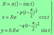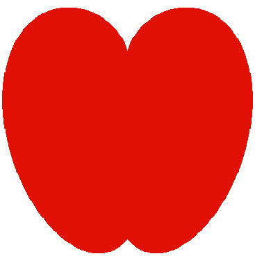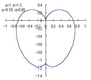 (3)式が描く曲線を図2に示し、これを着色するとその右のようになって、リンゴ形の図形が描かれます。