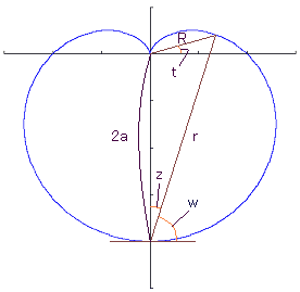 の冒頭に記したように、図1に示すカージオイド曲線の極座標表示の方程式は次式で表されます。