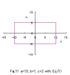 と同様に、縦と横の長さが異なる矩形(長方形)が得られます。a=10 で、b=1, c=2 の場合と b=2,