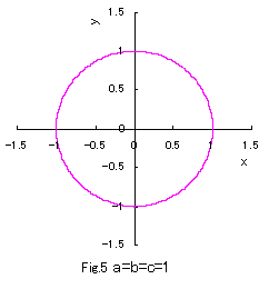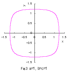 (1)式は凸形に歪んだ円、(2)式は円、(3)式は凹形に歪んだ円を表示し、