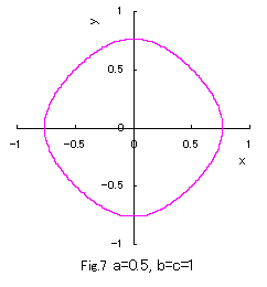 一般的には、次の方程式によって円や楕円、および、凹凸双方の歪んだ円または楕円が表現できます。