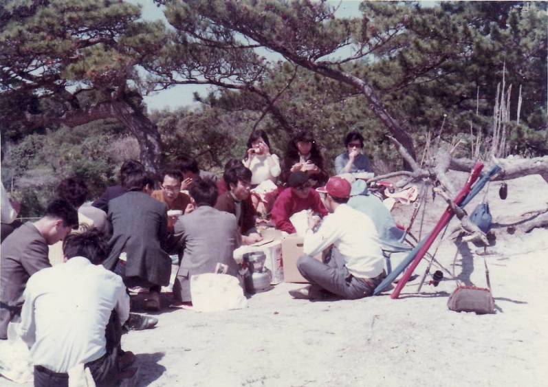 フィルムはサクラカラーであったか、フジカラーであったか覚えていません。そのネガフィルムはお蔵入りしてあり、何処に仕舞ったか忘れました。しかし、退色が免れた印画紙の裏を見ますと、SAKURA と印字されています。(当時の「さくら」は小西六写真の商標で、現在のコニカです。) 一方、退色した台紙の裏を見ますと、Fuji Film と極く薄く印字されています。ネガは同じなのに印画紙が異なるのは、級友に配布するのに何回かに分けてプリントしたためで、カメラ屋によって印画紙が変わったのだと思います。ネガの方は退色しているかどうかは、探し出して見てみなければ分かりません。プリントの方は、当初、どちらの台紙でも仕上がりが同じで綺麗でした。