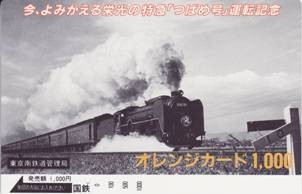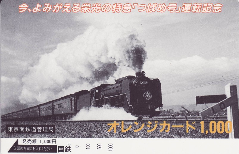 日本国有鉄道(現在のJR)のオレンジカード(現在は スイカに移行)にプリントされた当時の特急つばめ号