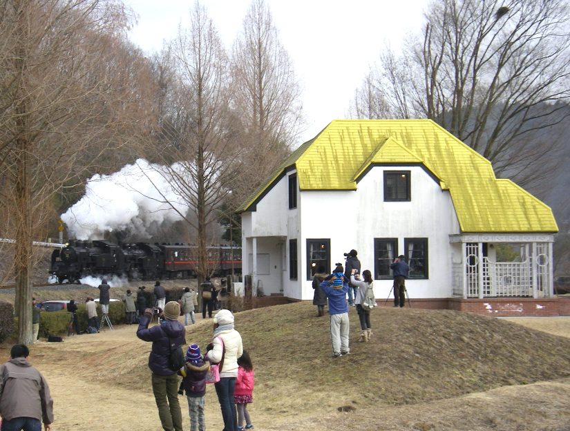 なお、頸城鉄道閉業後、その可愛い蒸気機関車は 西武鉄道・山口線 で観光列車の牽引機関車として活躍しました。その使命を終えた後、新潟県上越市頚城区百間町に里帰りして百間町駅跡の機関庫に温存されているそうです。