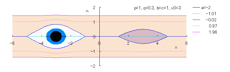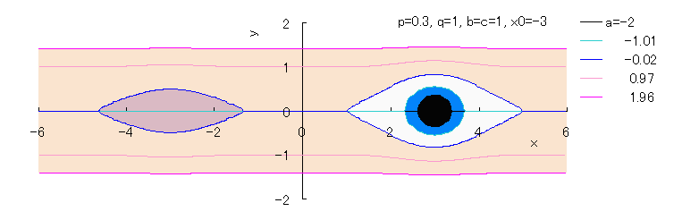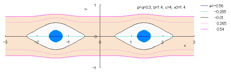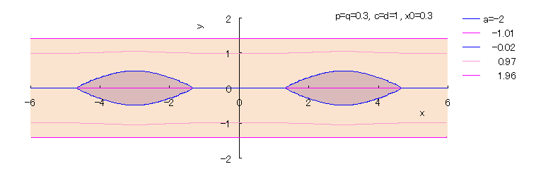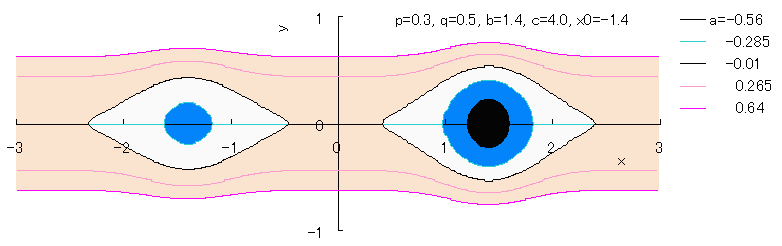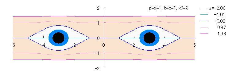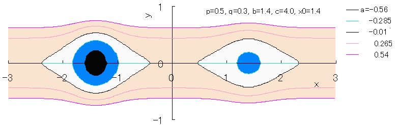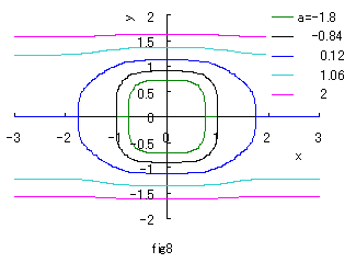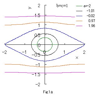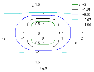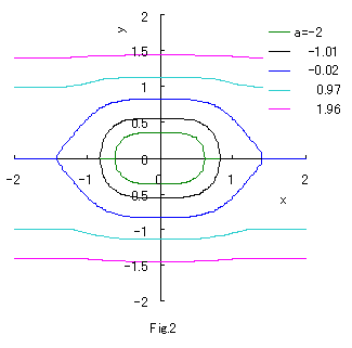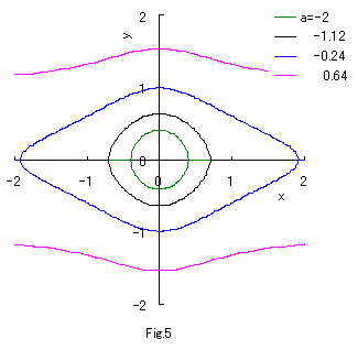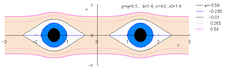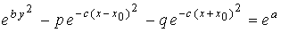 y の 2次指数関数と x の 4次指数関数の混成の次の方程式を考える。