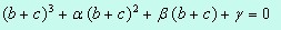 係数 a は(13)式で得られます。係数 b+c は(19)式の3次方程式の実数解で得られます。