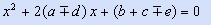 前節で得られた係数を(7)式に代入して、この実質的に2個の2次方程式が決定されます。