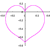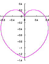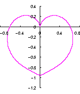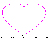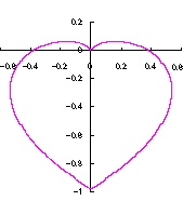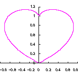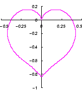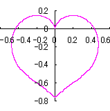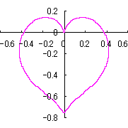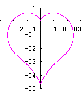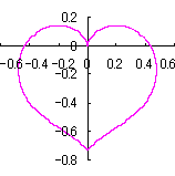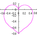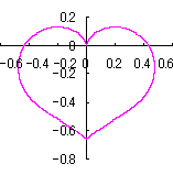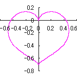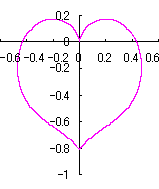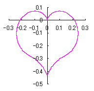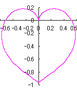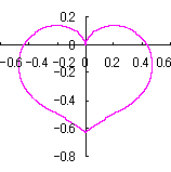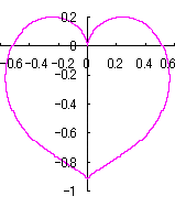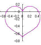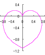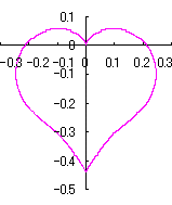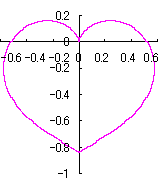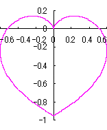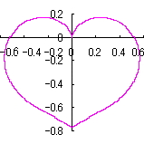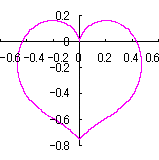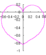 ハート形曲線は Heart Curve - Mathematische Basteleien、 および、First heart Curve - Wolfram|Alpha、 および、 Heart Curve -- from Wolfram MathWorld のサイトに代表して見られます。