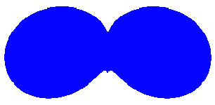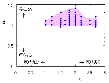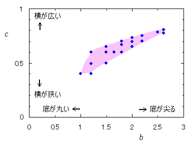 ピンク色が存在範囲で、青色のドットが ハート形曲線を描かせたときのデータ点 |
