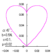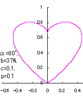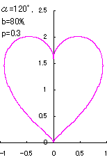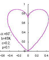 これ以外にも別方法にて、さらによい形のハート形がハート形曲線Ⅱb