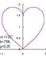 次に、カージオイドの底が、ハート形に移行するハートの底の与えられた角度 |