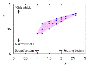 in which a heart curve may be found Herein, pink colored area represents its region, and blue colored dots represents data points which are obtained when heart curves are displayed as above. |