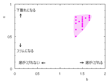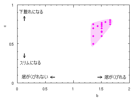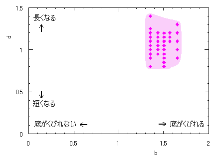 ピンク色が存在範囲で、複数のドット点がハート形曲線を描かせたとき のデータ点。なお、 |