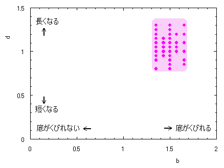 ピンク色が存在範囲で、複数のドット点がハート形曲線を 描かせたときのデータ点 |