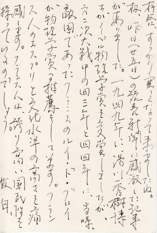 1949年に、湯川秀樹博士がノーベル物理学賞を受賞しましたが、第二次世界大戦中の1943年と1944年に、