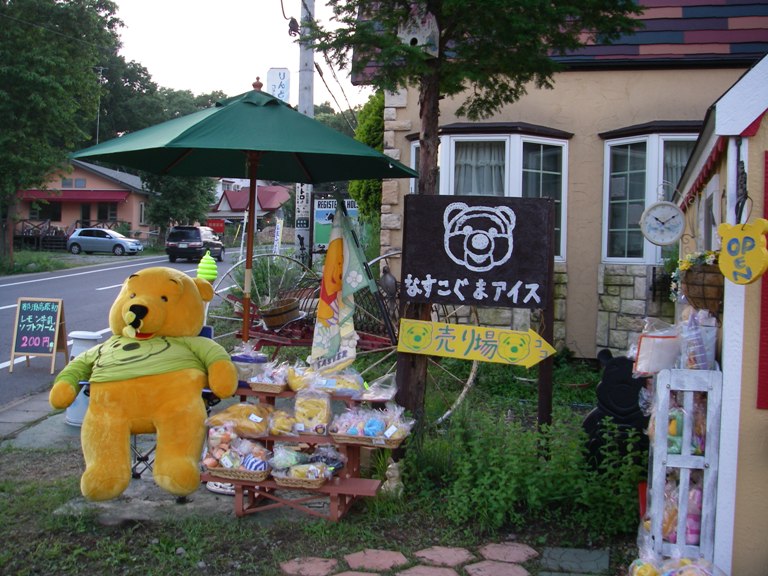 初めて味わうレモン牛乳ソフトグラッセにビックリ。美味しい。 添加物は一切使っていないそうです。色は天然素材のものだそうです。 奥様は若いときの吉永小百合さんそっくりの美人で、 プーさんの縫いぐるみを被ってお客様と応対する旦那さんは若くてバイタリティあふれた好青年。 1度は味わってみてください。初めての味に満足しますよ。お店を探すのにちょっと苦労するかもしれませんが、見つけてください。 最近、約20種類の那須こぐまたちが食べたというチョコレートなどの詰め合わせお菓子を発売しました。 20種の食材から作られているようです。いろいろな新鮮な味が楽しめて、どこか昔懐かしい食感もある美味しいお菓子です。 また、冬季限定として、今までより一寸濃厚な味のキャラメルアイスを新発売の予定だそうです。(2010年11月7日現在) |