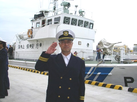 ひたちなか・さんま祭の会場で、国土交通省海上保安庁巡視艇「あかぎ」を見学したときの記念撮影です。 (イベントの一つとして、衣裳は自由に借りて試着できました。) |