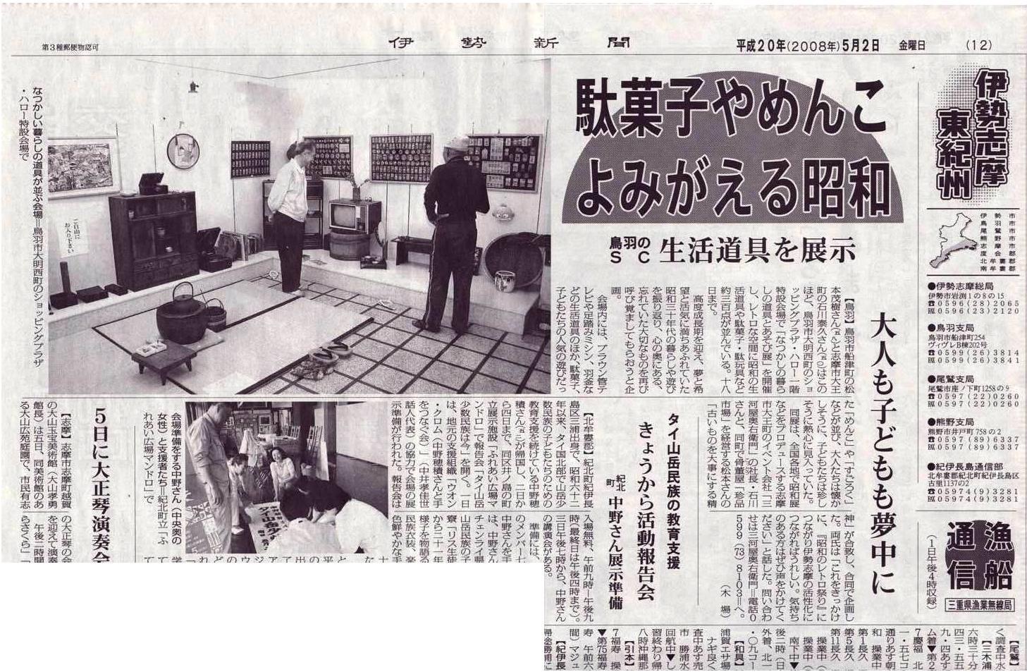 入室したら、偶然、伊勢新聞社の女性記者と主催者の方と3人となり、女性記者に写真を撮られて翌日の伊勢新聞にかなり大きく掲載されたのが次の画像(左が私)です。