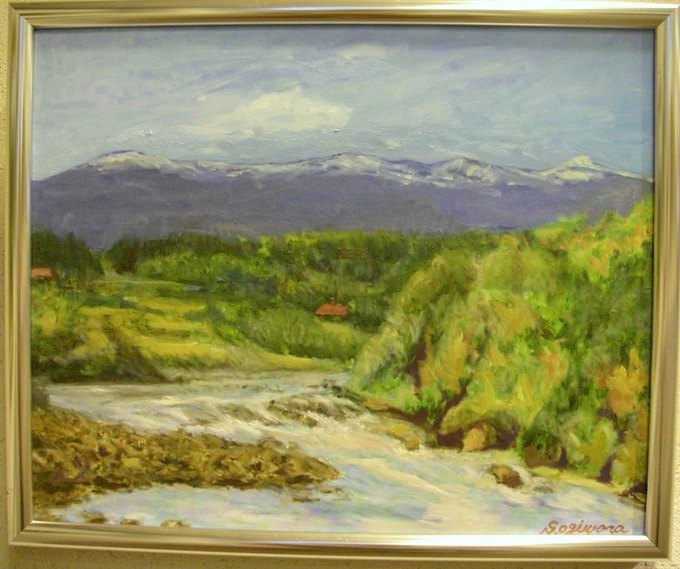 また、在任中、荻原昭三先生には陰日向にご支援を賜りました。 先生は㈱日立製作所・水戸工場の技術者から国立・茨城高専にご赴任になり、 機械工学科の技官として長年お勤めになられました。在任中、茨城県発明工夫展で県知事賞を取られ、油彩画を描くのがご趣味で、茨城県わくわく美術展に毎年入選されています。その作品の1つが下右の画像で、福島県の安達太良山の風景です。 2010年9月現在で83歳になられる氏はお元気で、水戸市民ボランティア”歴史アドバイザー水戸”の重要メンバーとして 、水戸偕楽園で観光客の歴史案内役としてご活躍されています。 |