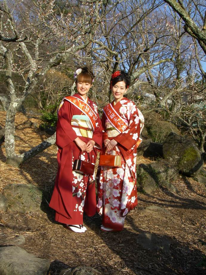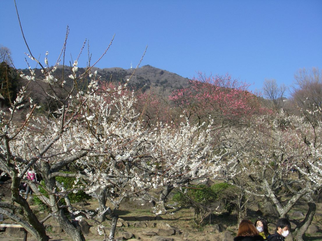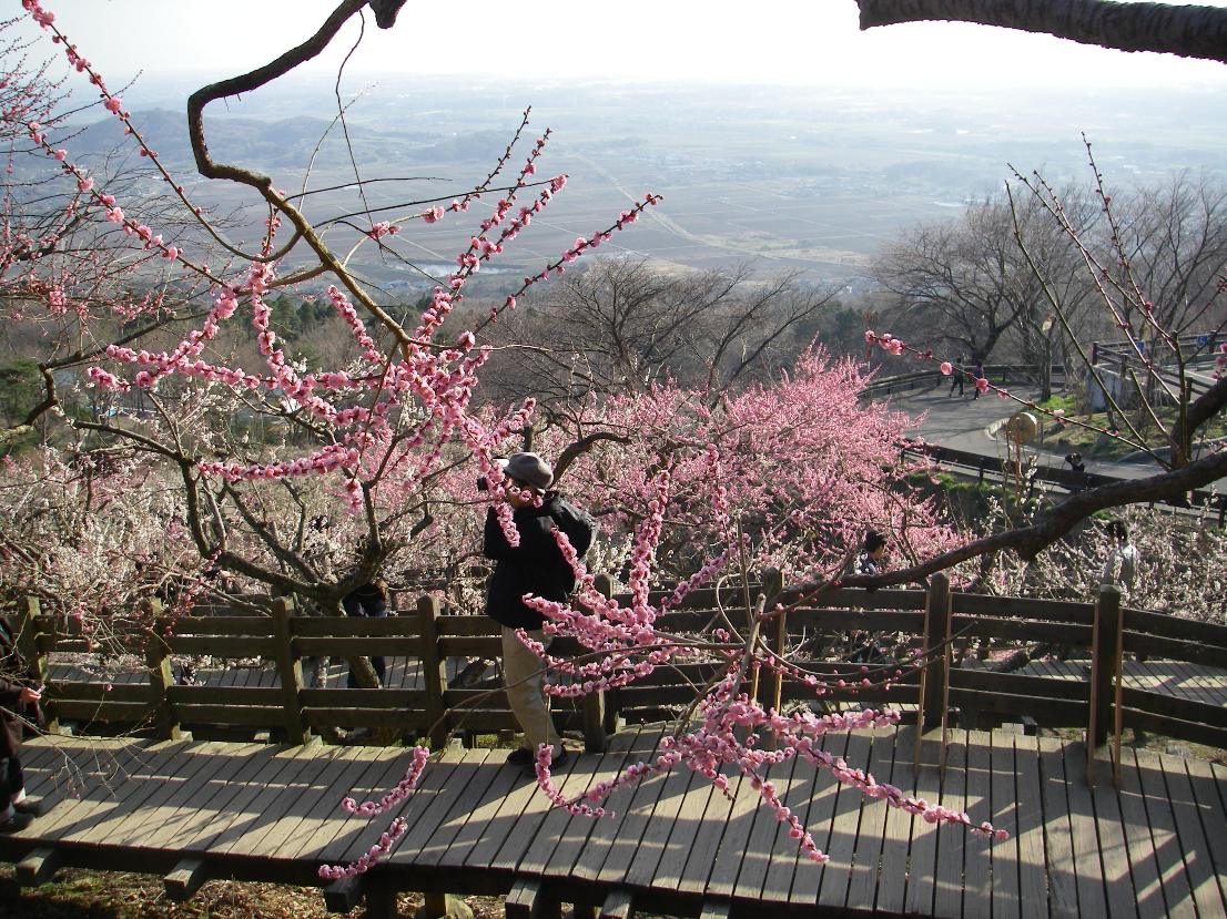 前項で荻原氏と水戸梅大使(梅娘)を紹介しましたが、筑波山の中腹にも素晴らしい梅園があります。 次の画像は私たちが2010年3月14日(日)に訪れたときのものです。 大勢の観梅客を美人の「つくば観光大使」がお出迎えしていました。 |