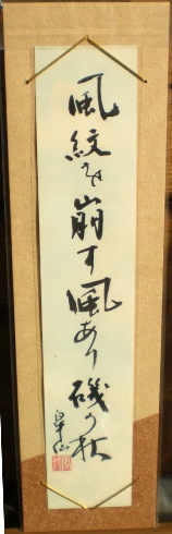 右の短冊は古市先生から戴いた先生直筆の先生が詠まれた俳句です。