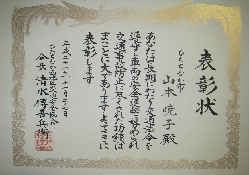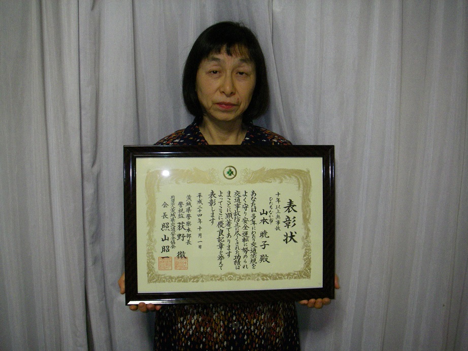 6. 山本暁子さんが安全運転(無事故無違反)の表彰を受けました 次の通りです。 |