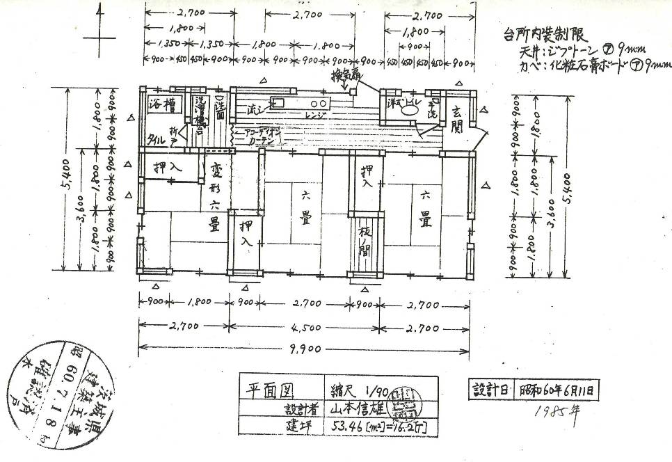 この許可証をもとに、大内等先生からご紹介いただいた工務店の社長さん(茨城県那珂郡東海村の 東海ロイヤルホテルの経営者でもあります)を通して、 400万円の家を建てて頂くことになりました。 私から提示したのは平面図のみで、他の細かな全ては建築者にお任せにしました。 具体的に建築に携わって頂いたのは、常陸太田市にある 竹沢木材(株)で、 そのハンサムでご親切な若旦那が監督に当っていました。 1987年3月に完成し、2020年の現在で築33年になりました。さすが木材屋さんだけあって、家中の柱には節がほとんどありません。 県内の素晴しい杉材を使って下さったようです。その様子を次の写真で示します。竹沢木材(株)様、本当に有難うございます。感謝いたしております。 |