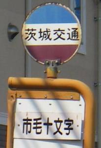 ひたちなか市市毛の国道6号線と県道の交差点名は「市毛十字路」ですが、 バス停は「市毛十文字」と呼び習わされてきた名称になっています。 |