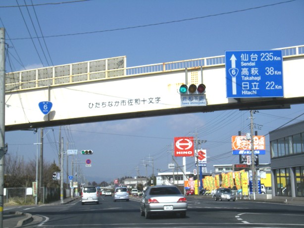 下左図のように、ひたちなか市下宿にある国道6号線の十字路では堂々と「佐和十文字」と書かれています。