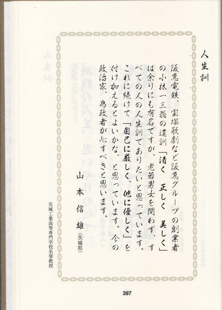 2018年6月頃、日本叙勲者協会 (その2)から往復はがきで「貴方の人生訓を書いて送り返して下さい。」とありました。私は人生訓を特に考えたこともないのでそのまま放っていました。少し経ってから、小学校の時の宝塚少女歌劇団の訓示が気に入り、何となくそれに沿った考え方をしてきたことを思い出し、それと今の世に自分が主張したい事とを組み合わせば、地に落ちている政治家(首相を含む)たちへの指南になるのではないかと思い、以下の画像に示すような人生訓を書いて返信しました。そのことを忘れていた8月に、品位ありそうなお声の女性から、「貴方の人生訓を掲載することにしました。出版ができ次第、1冊献本いたしますので、5万円余を振り込んでいただければ。」と電話連絡があり、私が承知した2,3日後に書類入り封筒で連絡がありました。それで、私は一応、振り込んだのですが、一寸気がかりな感じも残っていたので、インターネットで調べて見ました。日本叙勲者協会は叙勲を授与する国の機関ではなく、叙勲者のネットワーク等に携わっている民間の任意団体のようです。ハッキリ言って、この協会は私の生活には何ら関係ありません。現在は記事が削除されてしまいましたが、実際、2018年6月6日付のあるサイト(現在は削除されています)に「・・・今回の依頼は、紛らわしい名を使い、本人のプライドをくすぐり逃げられないようにする悪徳商法の手口だと初めて気が付いた。即刻、その直後にメールで断りの意思を伝えた。・・・」と非難している方もおられました。しかし、せっかくの機会ですので、叙勲者たちに交じって私の文を掲載して頂けるのなら、5万円余は特にボラれる金額ほどでもない、いや、この機会は喜ばしくもあるかな、と思った訳です。 |