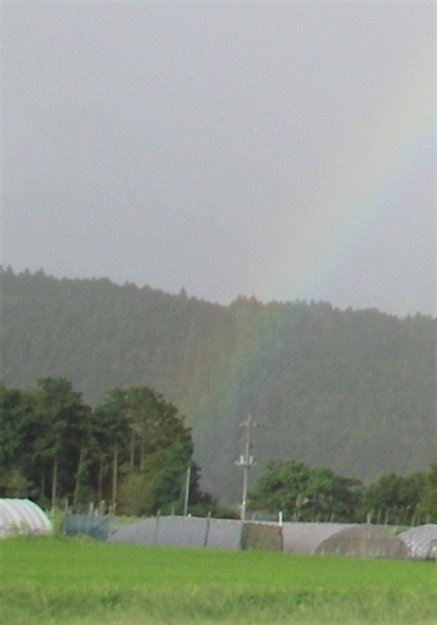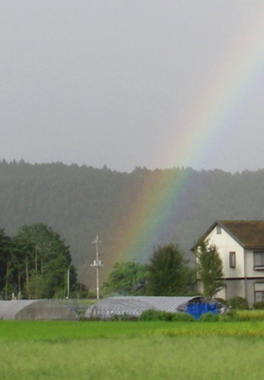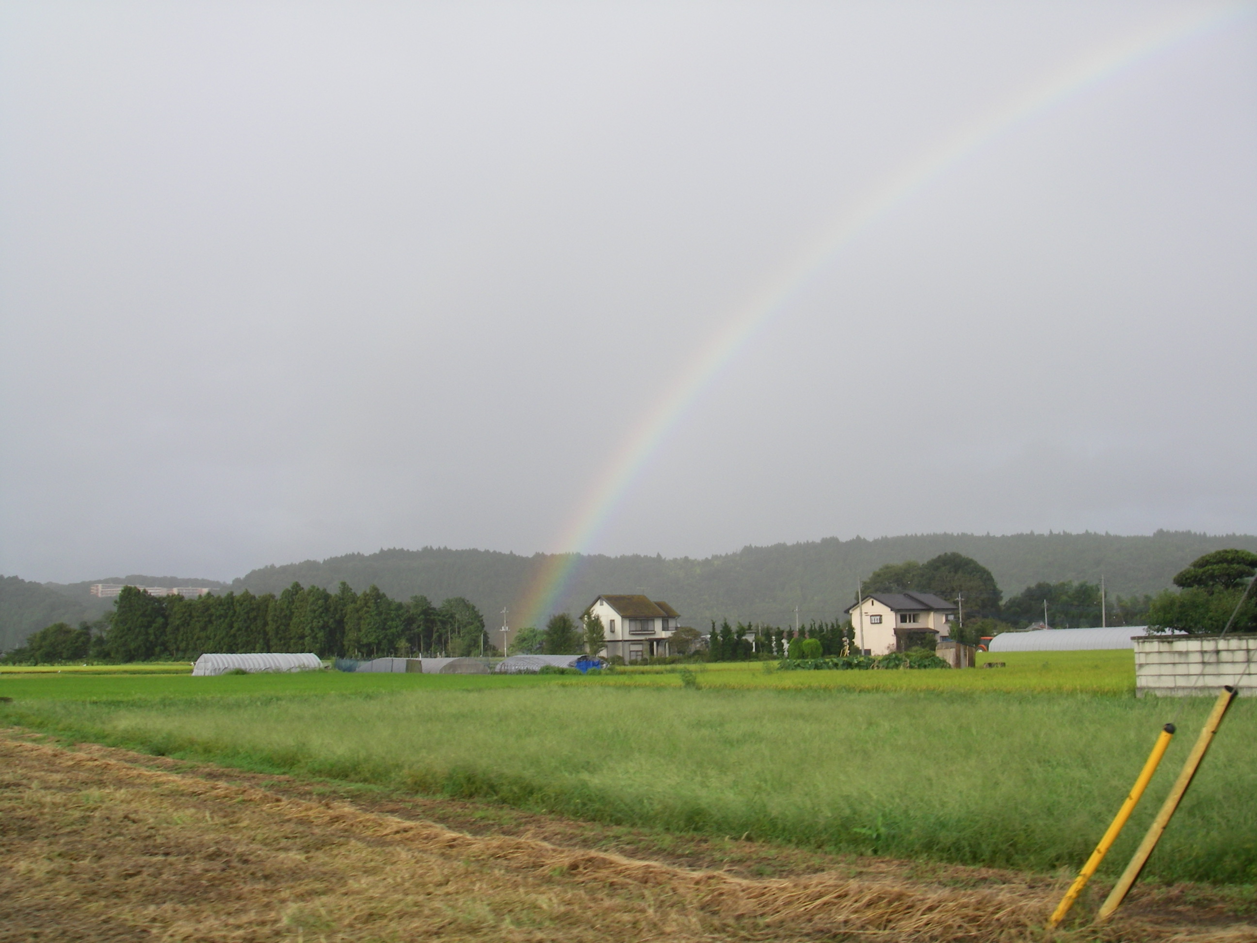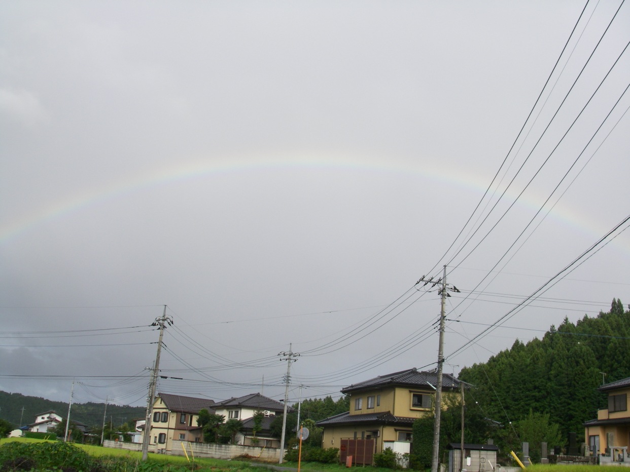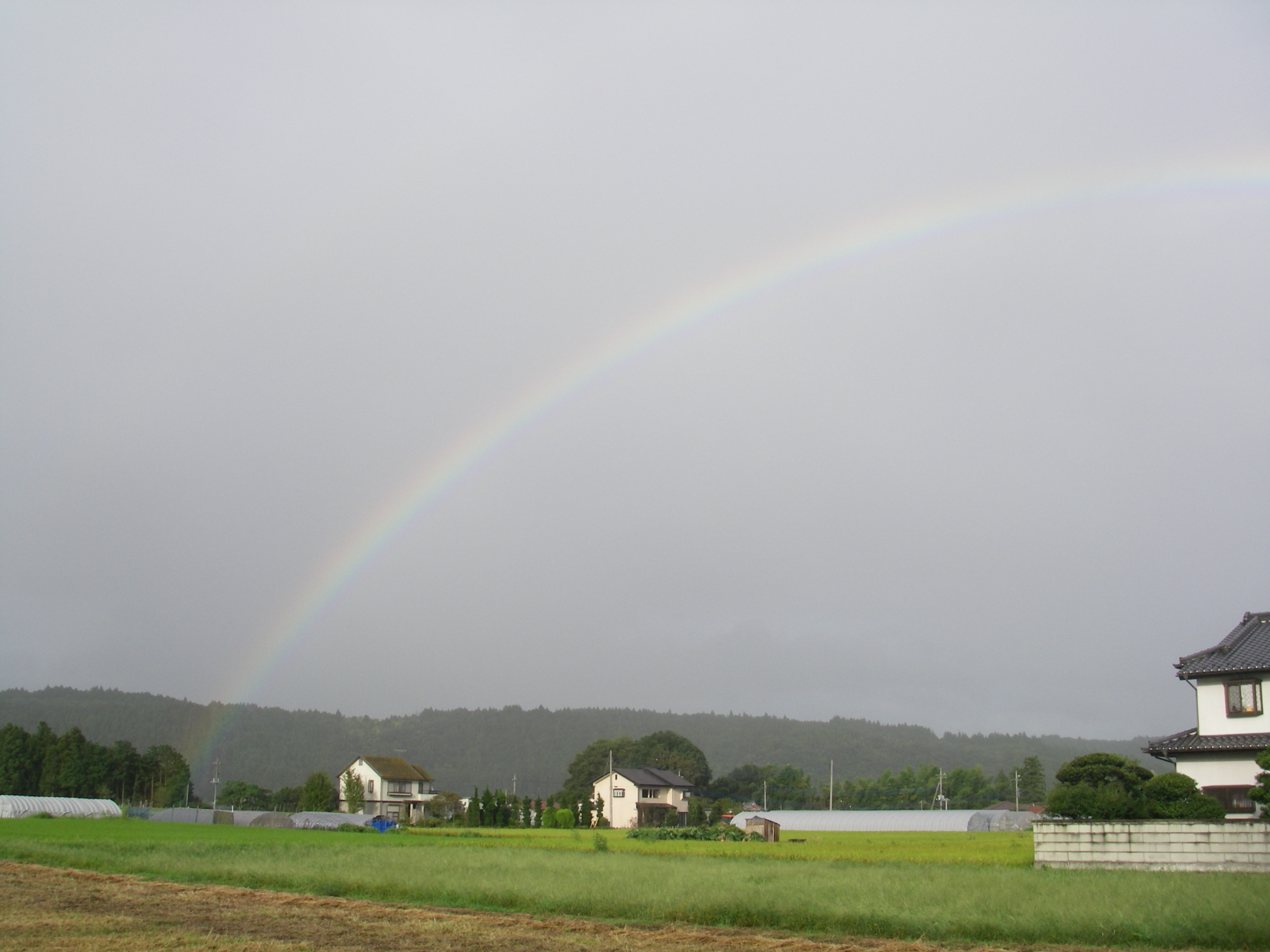 2011年9月3日(土)に栃木県さくら市喜連川で、「虹の足」が現れました。のろのろ台風12号の影響によるにわか雨によるものです。 |
