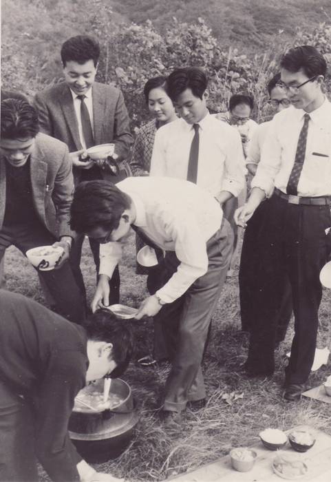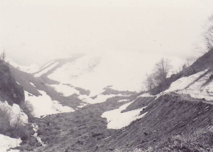 1967年11月に私たち八田研究室の芋煮会が二口峡谷で行われました。八田先生を始め、車を持っている人の車で分乗して仙台から2時間近くの峡谷に辿り着き、15人くらいのメンバーで飯ごう炊飯と芋煮の行楽を楽しみました。そのうちの何人かは近くの大東岳登山をして戻ってきました。私は登りません。芋煮会が終わり、15時過ぎに八田先生始め大半の人は車でお帰りになりました。正式な登山姿の佐藤益美先生(山形大学工学部名誉教授)が、二口峠を越えて山形県側の遊仙峡を経て山寺に抜けるコースで帰るというのです。先生の声掛りで、私を含めた数人が参加しました。出発してまもなく雨が降り始めましたが、たいした雨ではなく、峠もきついものではなさそうなのでそのまま進みます。そのうち雨が雪に変わり、夕暮れの薄暗がりとなり、次第に登りが急斜面となってきます。登山道はぬかるんでスリップもします。雨と雪と汗で全身ずぶぬれ。足元は泥んこ。夜に入り真っ暗になりましたが、体力はありますので皆そのままジグザグの登山道を急登します。さらさらと雪は益々強くなって、周りは白くなりました。そのうち、行く手よりやや南の遠い暗闇の斜面から「おーい。」と誰かが呼んでいるような声を耳にします。多分聞こえているのは私だけでしょう。それでも皆と一緒に登って行きますが、その呼び声が繰り返しあるので、私は皆に、「これ以上進むと危ないので引き返しましょうよ。」と言いました。すくさま皆は「そうしよう。」と賛同し、真っ暗ななか、雪や雨の泥んこの道をホーホーの態で何キロか下り、やっと、最初に人の気配のする小さなロッジに辿り着きました。ここの管理の叔母さんにタクシーを頼んでもらい、かなり長時間待った後にタクシー2台がやってきました。真っ暗な雨のなかをタクシーで仙山線の熊ヶ根駅に着けてもらい、ここから列車で帰仙したのでした。ずぶ濡れで泥んこの我々に、タクシーの方にはご迷惑を掛けました。 return |
