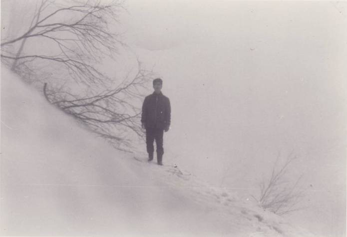 もう1つ、中1の冬(1956年[昭和31年]2月)に、家近くの三宗の丘の小道を1人でスキーで滑走していたときに、Y 字形に小道が合流する地点で6人の少年少女の乗った鋼鉄製の犬ゾリと衝突し、私のスキーはソリの下にもぐりこみ、私の体はソリに乗った少年たちの上を飛び越えて、