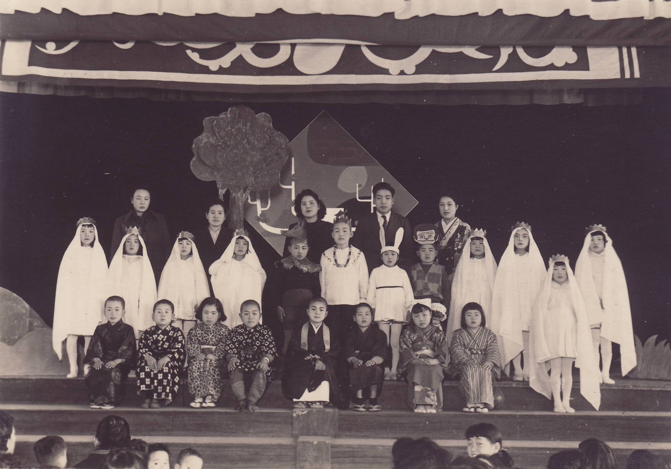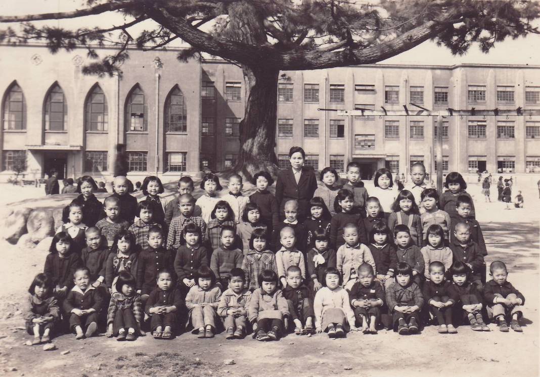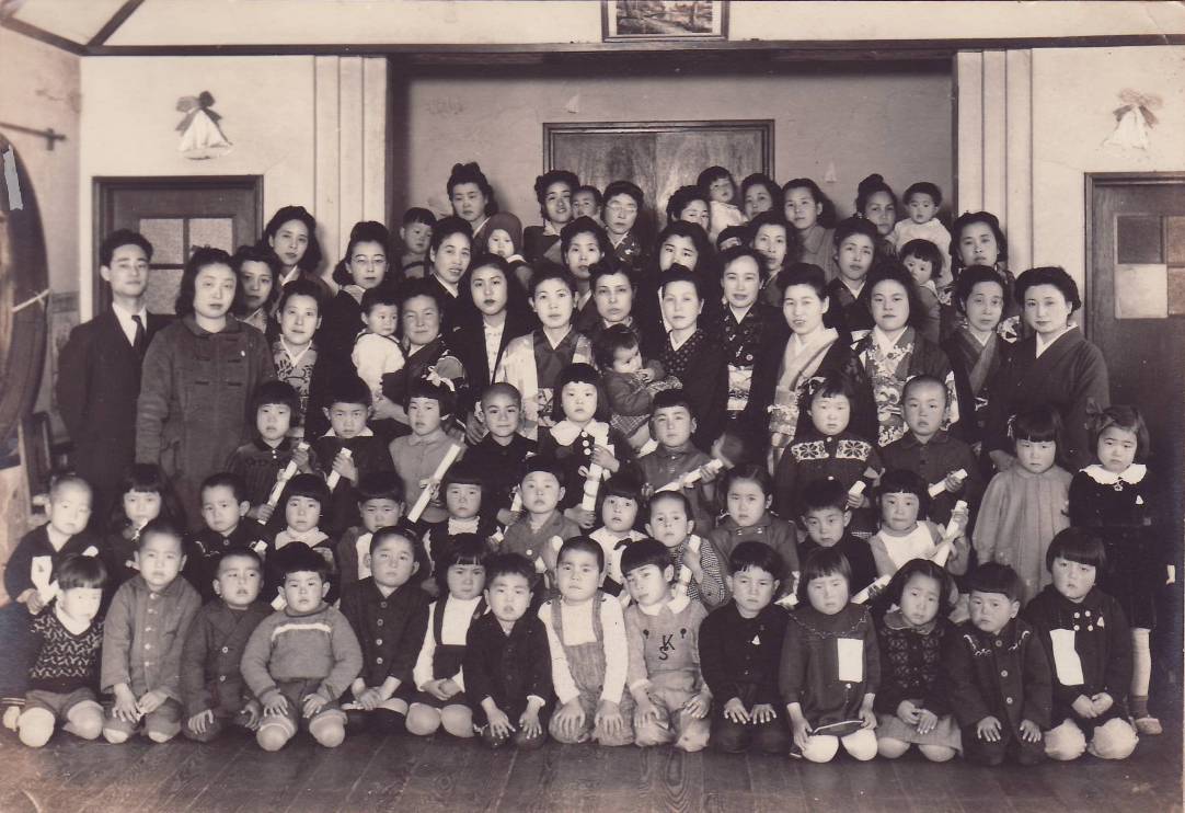 に、私は第1期園児として通っていました。母が尼崎市内の幼稚園に応募しようとしたところ、どこも定員満員でした。たまたま、阪神電鉄武庫川駅の脇の武庫川を渡る歩道橋で出合ったご婦人に「この辺に幼稚園はないでしょうか。」と尋ねたところ、そのご婦人が武田先生で、「神戸に私達が幼稚園を開園する予定なので、ご一緒に通いませんか。」と言って下さったのが切っ掛けでした。それで、毎日、もう1人の可愛い園児・高柳富貴子ちゃんと一緒に、両先生の引率で下り阪神電車の武庫川駅から西宮東口まで乗りました。そこで、園長の笠井先生が市役所に出勤され、あとの私達は