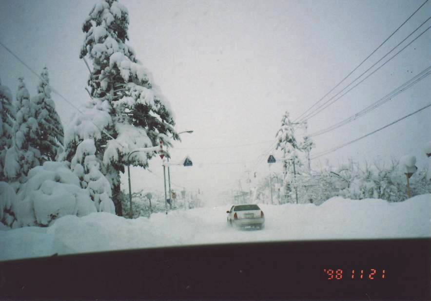 1960年1月の高校2年のある朝、自宅の日本石油㈱藻岩アパート (札幌市南24条西9丁目1118番地。2005年ごろに取り壊されました) から札幌南高校(南18条西6丁目)に、同級で同じアパートの 加藤綜和君[註7]と一緒に徒歩で登校していました。朝から北西風の風雪の中、向かい風に対抗するために、ヤッケに身を包んで前かがみに歩いて柏中学校近くの南21条の市電通りに差しかかる頃から激烈な吹雪となり、大量に降る雪と雪面から舞い上がる雪粉とで、まるでミルクの中に浸かったように、周りは真っ白で何も見えなくなりました。物凄い雪煙のため、自分の手足さえ何処にあるのかが分からないのですよ。方向感覚もなくなり完全なホワイトアウトです。