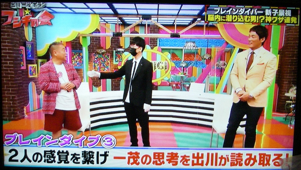 【「以心伝心」と「幻聴」の実演をテレビ放映】(その2) 2022年7月9日(土)にテレビ朝日 23時からの番組「出川一茂ホラン☆フシギの会」の中頃で、ブレインダイバーと称する若い方 (新子景視氏) の「脳内に飛び込む男の神業連発」という不思議な実演が、再度、放映されました。