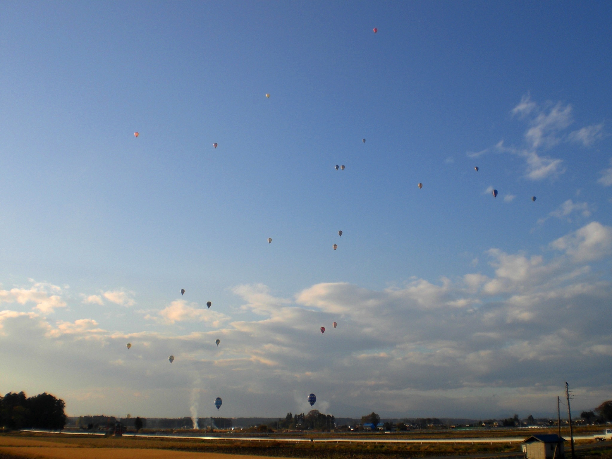 2013年11月22日(金)夕方に栃木県芳賀郡芳賀町をドライブしたときに、たまたま、熱気球がたくさん西の空に浮かんでいました。 検索すると、「 とちぎ熱気球インターナショナルチャンピオンシップ」のようです。 |
