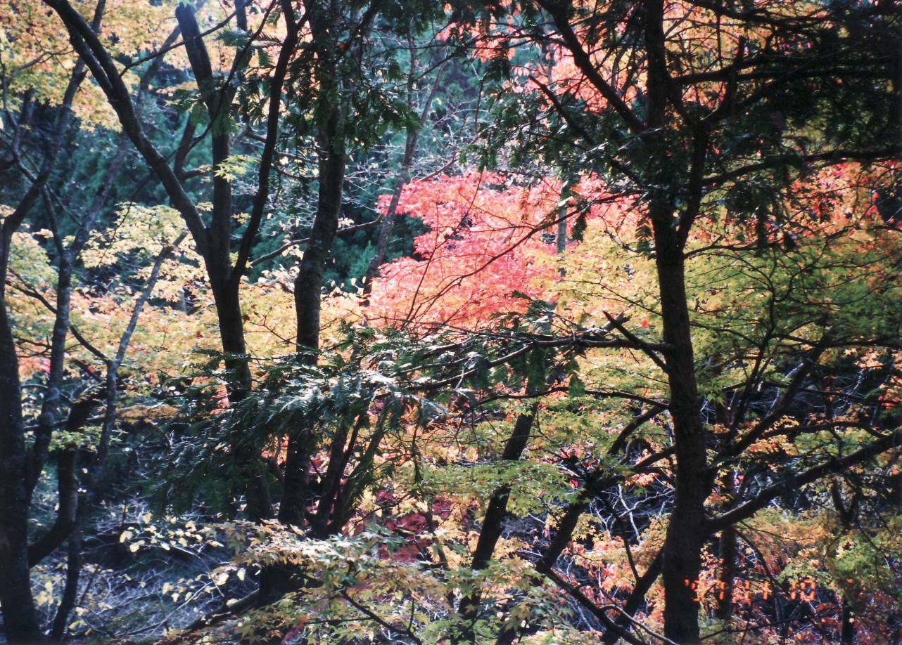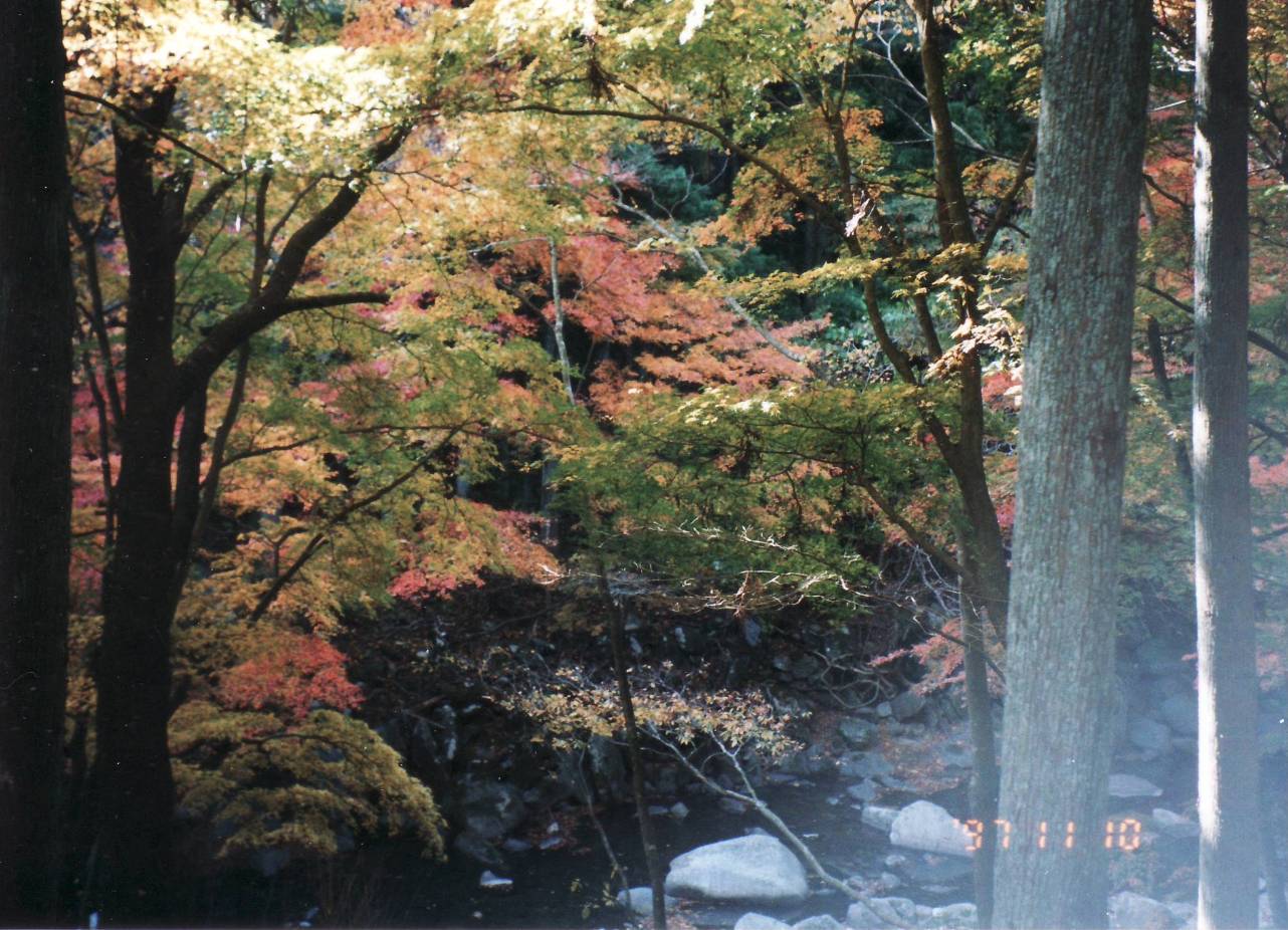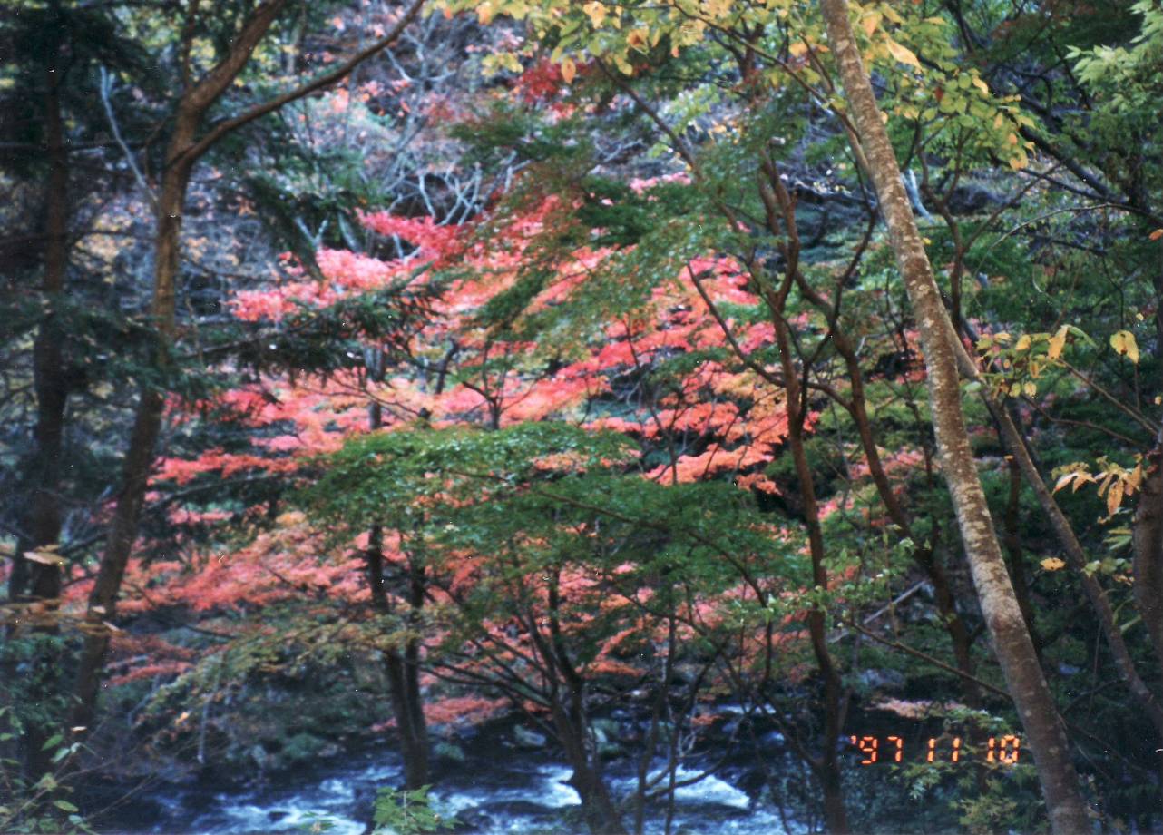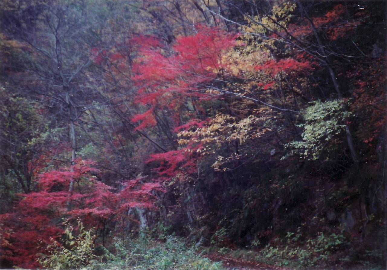 四時川渓谷の紅葉(つづき) 1997年11月10日(月) 天気は晴 川沿いの危険な林道にて |