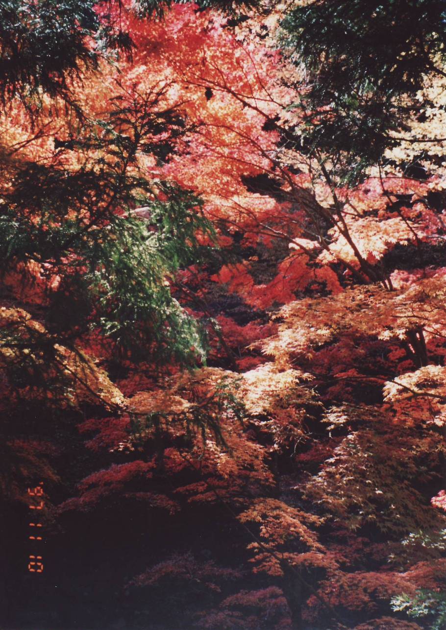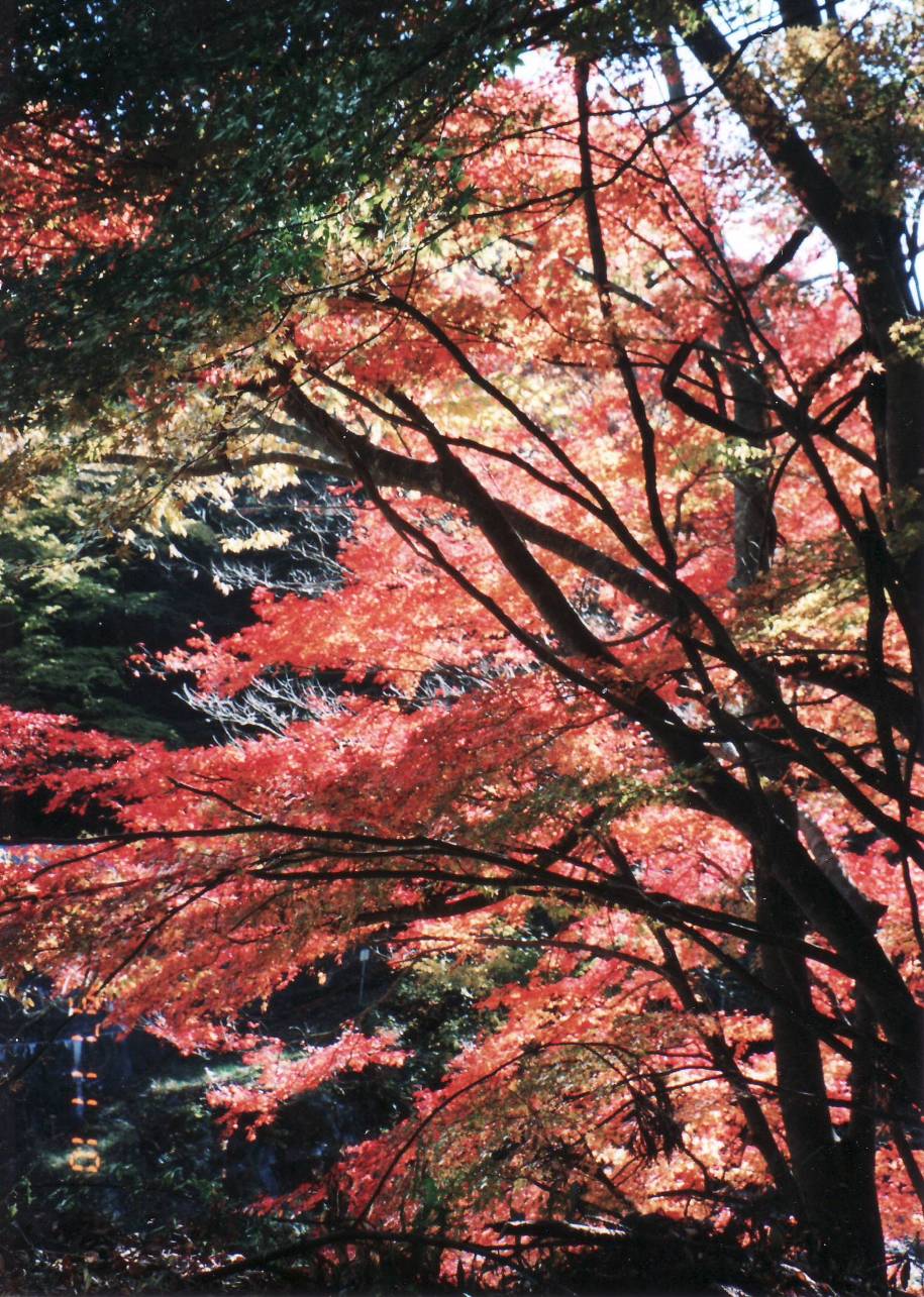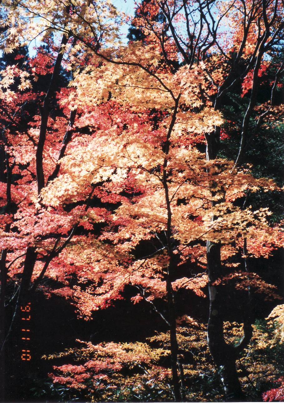 四時川渓谷の紅葉(つづき) 1997年11月10日(月) 天気は晴 川沿いの危険な林道にて |