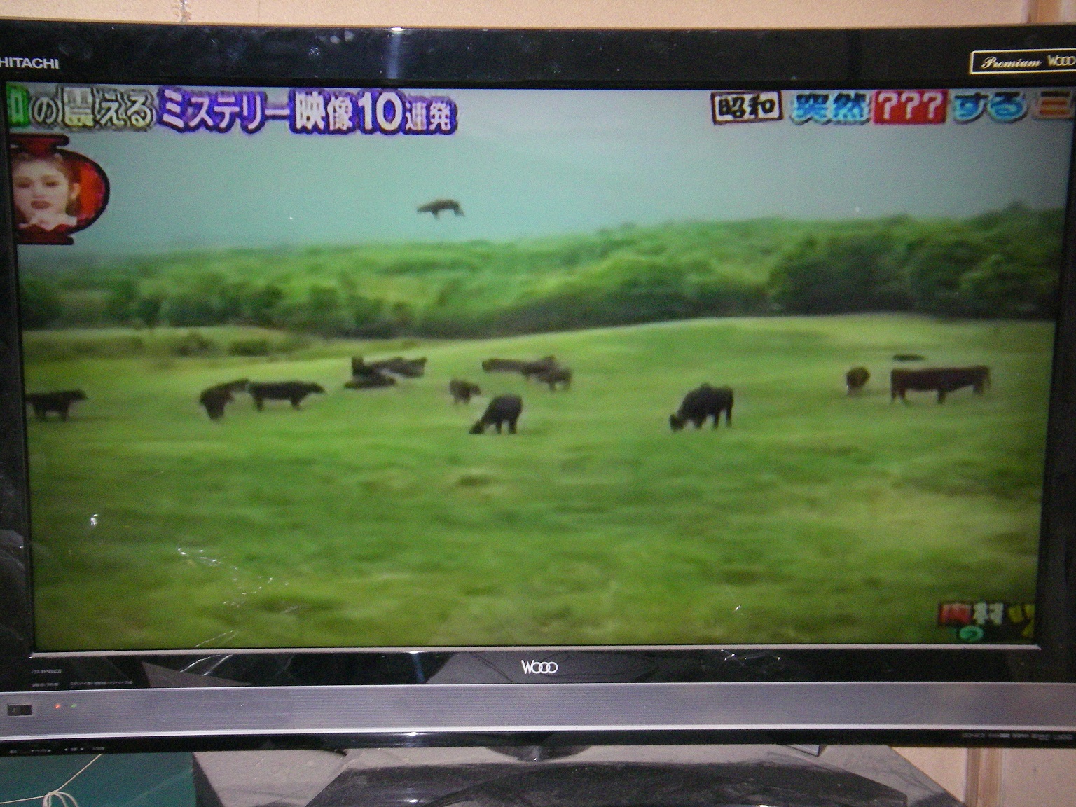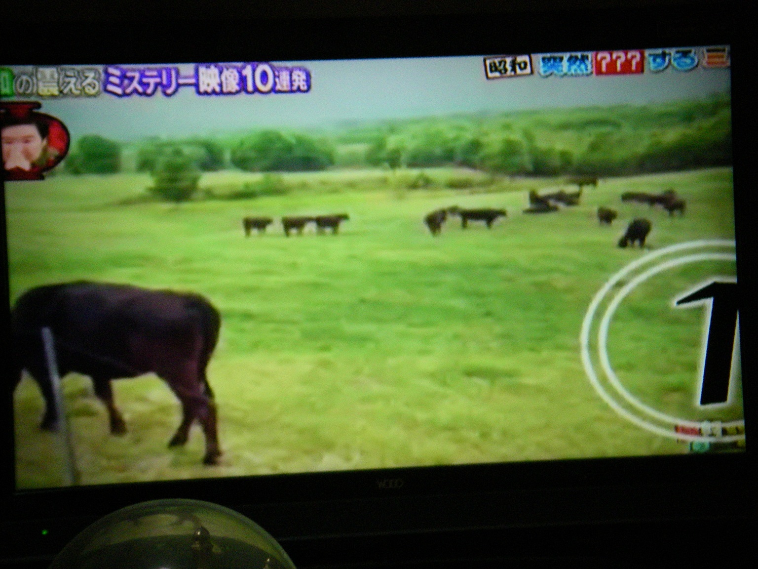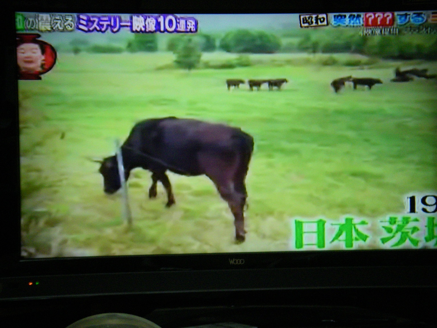 2023年7月18日(火)20時10分頃にテレビ朝日で放映された「内村のツボる動画『昭和から令和まで…世界の衝撃映像大連発 SP』」の中の「突然浮遊する牛」の各画面をデジカメで撮影して構成したものを次に示します。