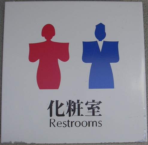 和服姿のちょっと珍しいトイレ案内板です。 2014年1月13日(月)午後に茨城県笠間市にある笠間稲荷神社に初詣に行ったときに、 休憩所で見つけました。さすが、神社。 |