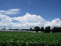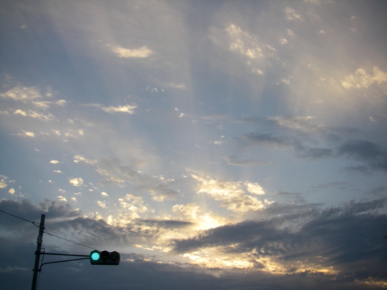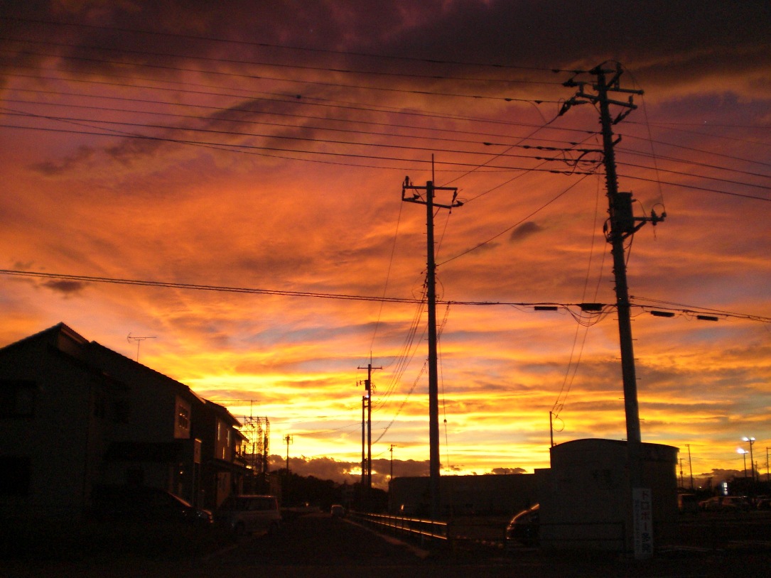 2014年8月2日(土)夕方に茨城県ひたちなか市新光町を通りかかったときに、明日への希望につながるような、きれいな夕空が現れました。 |