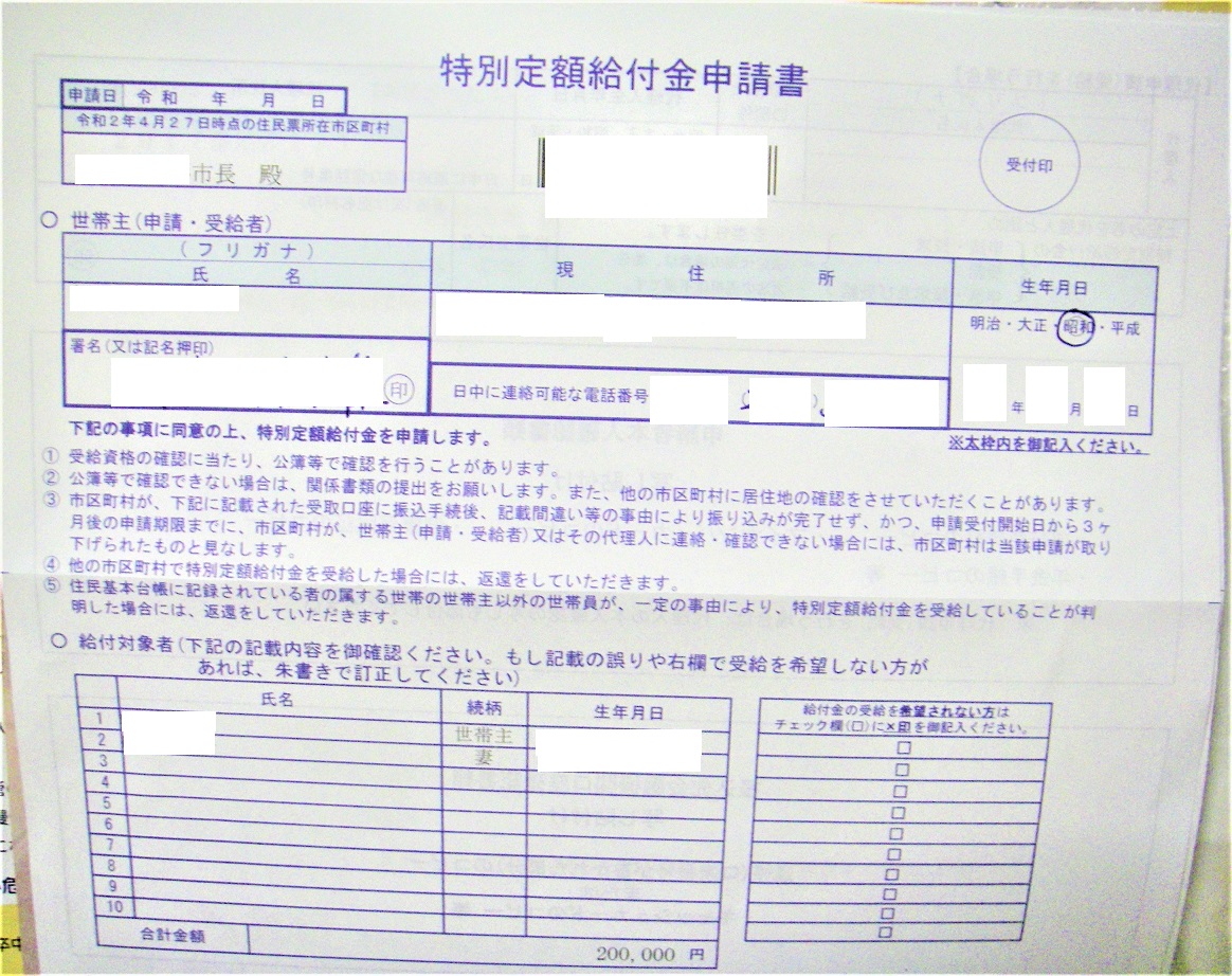 5月25日にやっと、国からの特別定額給付金(一家族計20万円)の申請書が市から届いた。1か月待たされた。この国のやることは遅い。そして、申請書の書き方が一部なっていない。というのは、うっかりチェック ☑ すると、給付金の受給を拒否したことになるからだ。