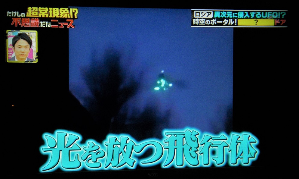 2021年12月1日(水)にテレビ朝日 19時からの番組「たけしの超常現象!?不思議だなニュース」の初めの方に、漫画「ドラえもん」に登場する「どこでもドア」のような光る映像にUFOが吸い込まれて消えてゆくというロシア国内で撮影された動画のテレビ放映がありました。