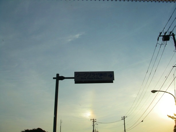 (2) 2011年5月25日(水)17時57分に、茨城県ひたちなか市東石川の勝田ワークプラザ付近で、明瞭ではありませんが、次のような幻日が見られました。 |